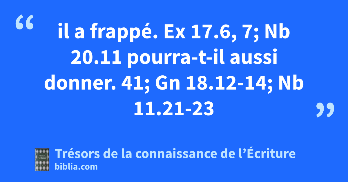il a frappé. Ex 17.6, 7; Nb 20.11 pourra-t-il aussi donner. 41; Gn 18.12-14; Nb 11.21-23