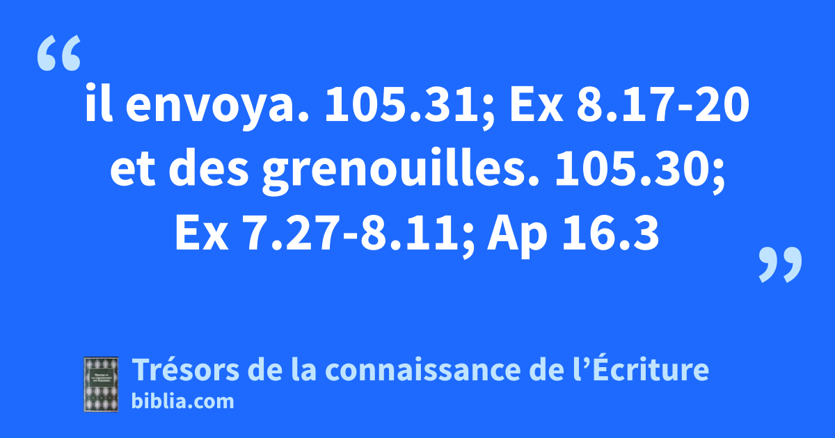 il envoya. 105.31; Ex 8.17-20 et des grenouilles. 105.30; Ex 7.27-8.11; Ap 16.3
