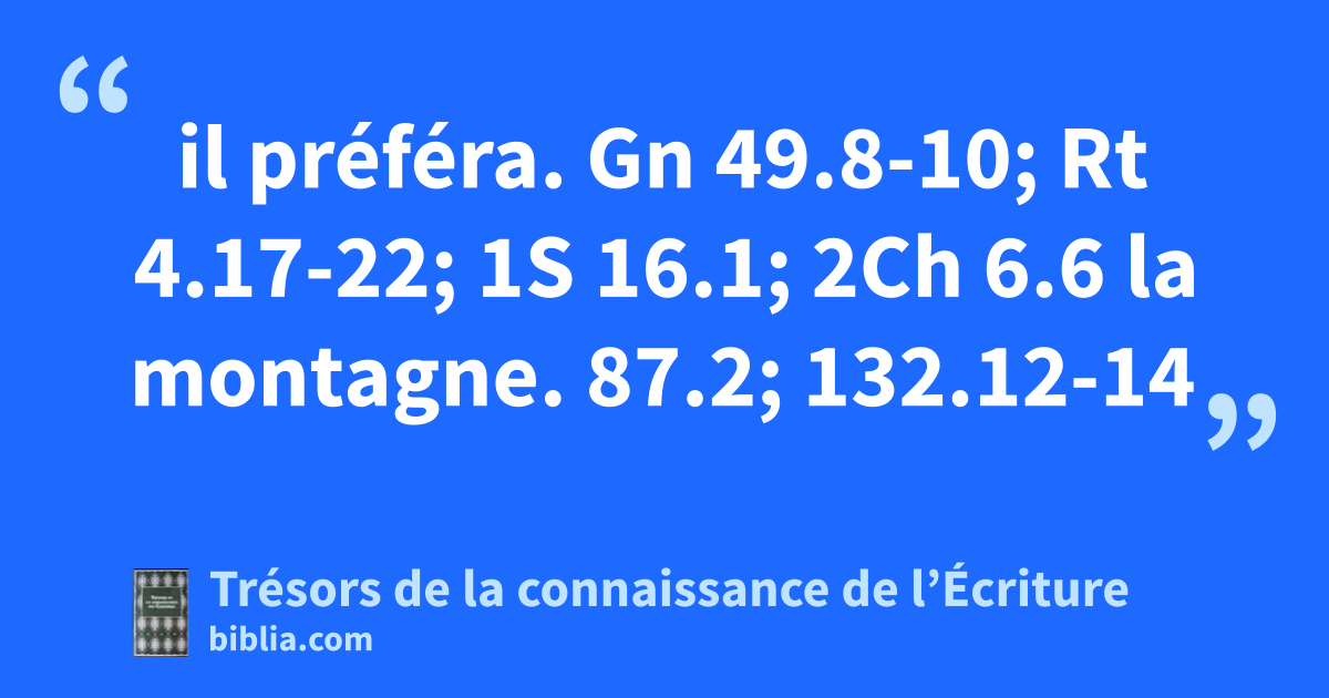 il préféra. Gn 49.8-10; Rt 4.17-22; 1S 16.1; 2Ch 6.6 la montagne. 87.2; 132.12-14