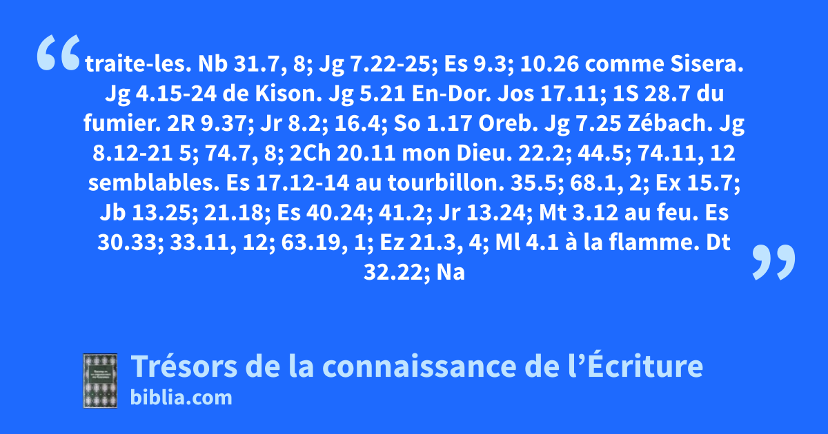 traite-les. Nb 31.7, 8; Jg 7.22-25; Es 9.3; 10.26 comme Sisera. Jg 4.15-24 de Kison. Jg 5.21