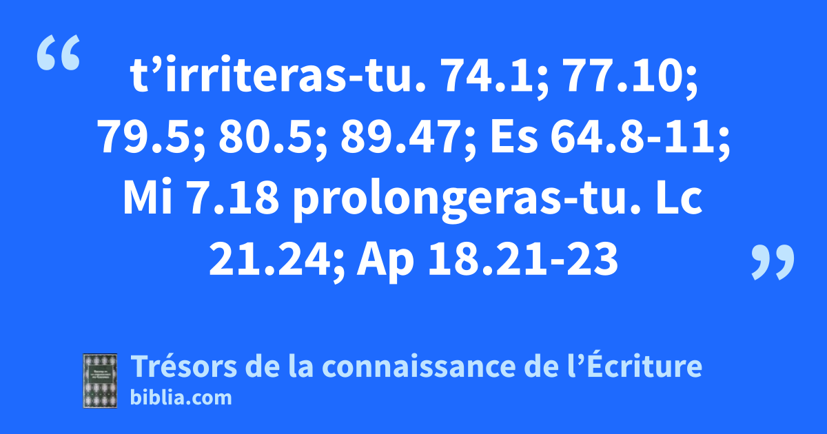 t’irriteras-tu. 74.1; 77.10; 79.5; 80.5; 89.47; Es 64.8-11; Mi 7.18 prolongeras-tu. Lc 21.24; Ap 18.21-23