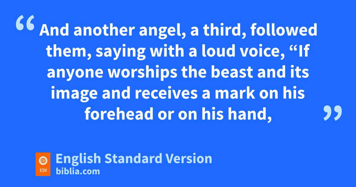 9 And another angel, a third, followed them, saying with a loud voice, “If anyone uworships the beast and its image and receives va mark on his forehead or on his hand, 10 he also will drink wthe wine of God’s wrath, xpoured full strength into the cup of his anger, and yhe will be tormented with fire and sulfur in the presence of the holy angels and in the presence of the Lamb. 11 And zthe smoke of their torment goes up forever and ever, and athey have no rest, day or night, these uworshipers of the beast and its image, and whoever receives the mark of its name.”