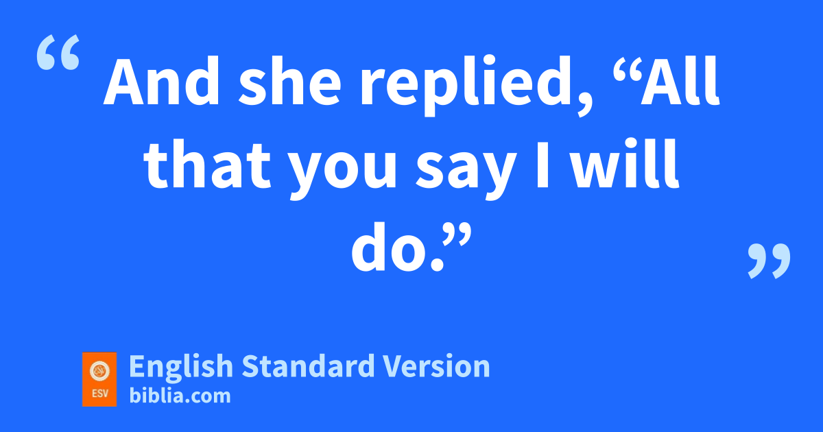 3 Then Naomi her mother-in-law said to her, “My daughter, should I not seek krest for you, that it may be well with you? 2 Is not Boaz lour relative, mwith whose young women you were? See, he is winnowing barley tonight at the threshing floor. 3 nWash therefore and anoint yourself, and put on your cloak and go down to the threshing floor, but do not make yourself known to the man until he has finished eating and drinking. 4 But when he lies down, observe the place where he lies. Then go and uncover his feet and lie down, and he will tell you what to do.” 5 And she replied, “All that you say I will do.”