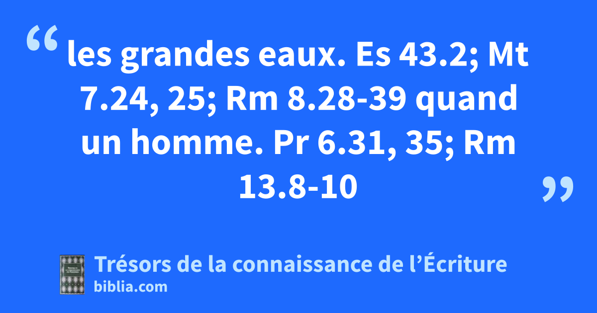 les grandes eaux. Es 43.2; Mt 7.24, 25; Rm 8.28-39 quand un homme. Pr 6.31, 35; Rm 13.8-10