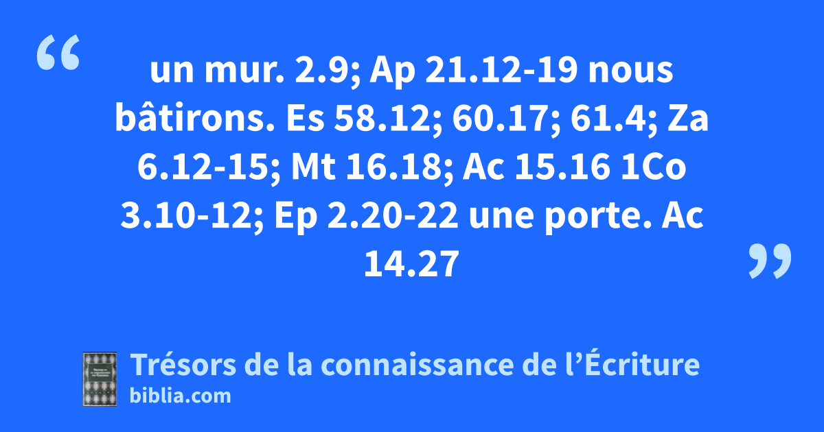 un mur. 2.9; Ap 21.12-19 nous bâtirons. Es 58.12; 60.17; 61.4; Za 6.12-15; Mt 16.18; Ac 15.16 1Co 3.10-12; Ep 2.20-22 une porte. Ac 14.27