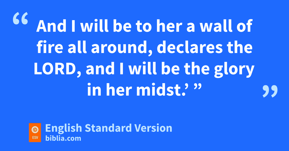 2 1 And I lifted my eyes and saw, and behold, oa man with a measuring line in his hand! 2 Then I said, “Where are you going?” And he said to me, p“To measure Jerusalem, to see what is its width and what is its length.” 3 And behold, qthe angel who talked with me came forward, and another angel came forward to meet him 4 and said to him, “Run, say to that young man, r‘Jerusalem shall be inhabited sas villages without walls, because of tthe multitude of people and livestock in it. 5 And I will be to her ua wall of fire all around, declares the Lord, and I will be the glory in her midst.’ ”