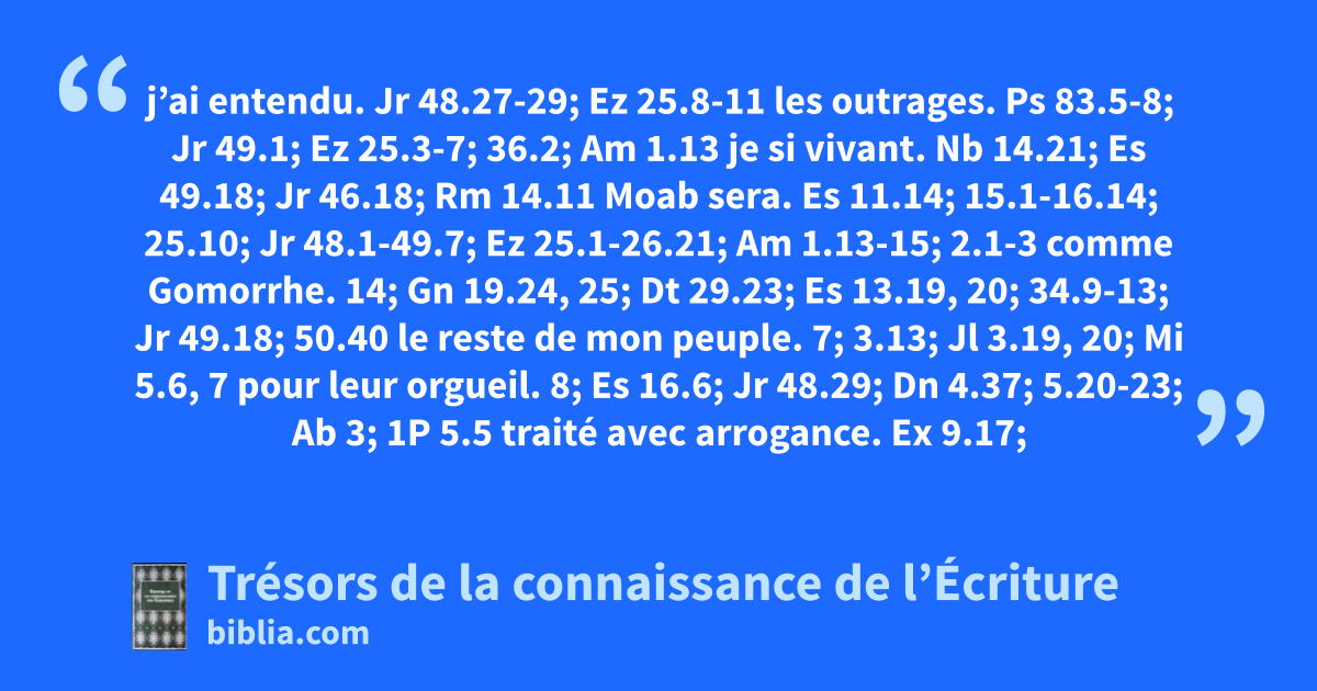 j’ai entendu. Jr 48.27-29; Ez 25.8-11 les outrages. Ps 83.5-8; Jr 49.1; Ez 25.3-7; 36.2; Am 1.13